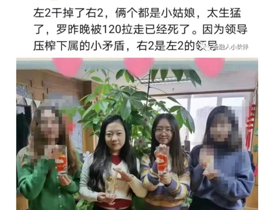 说是办公室就他们两个,捅完,估计是看着死的,然后锁门自己去投案;罗的室友联系不到她,去太平湖找人,中控拿钥匙打开的办公室,然后报的警;结果同时来了2批警察,一批丰台的(投案分局),一起西城的(报警分局)。案发会议室隔壁人都在加班,居然没有人听到动静