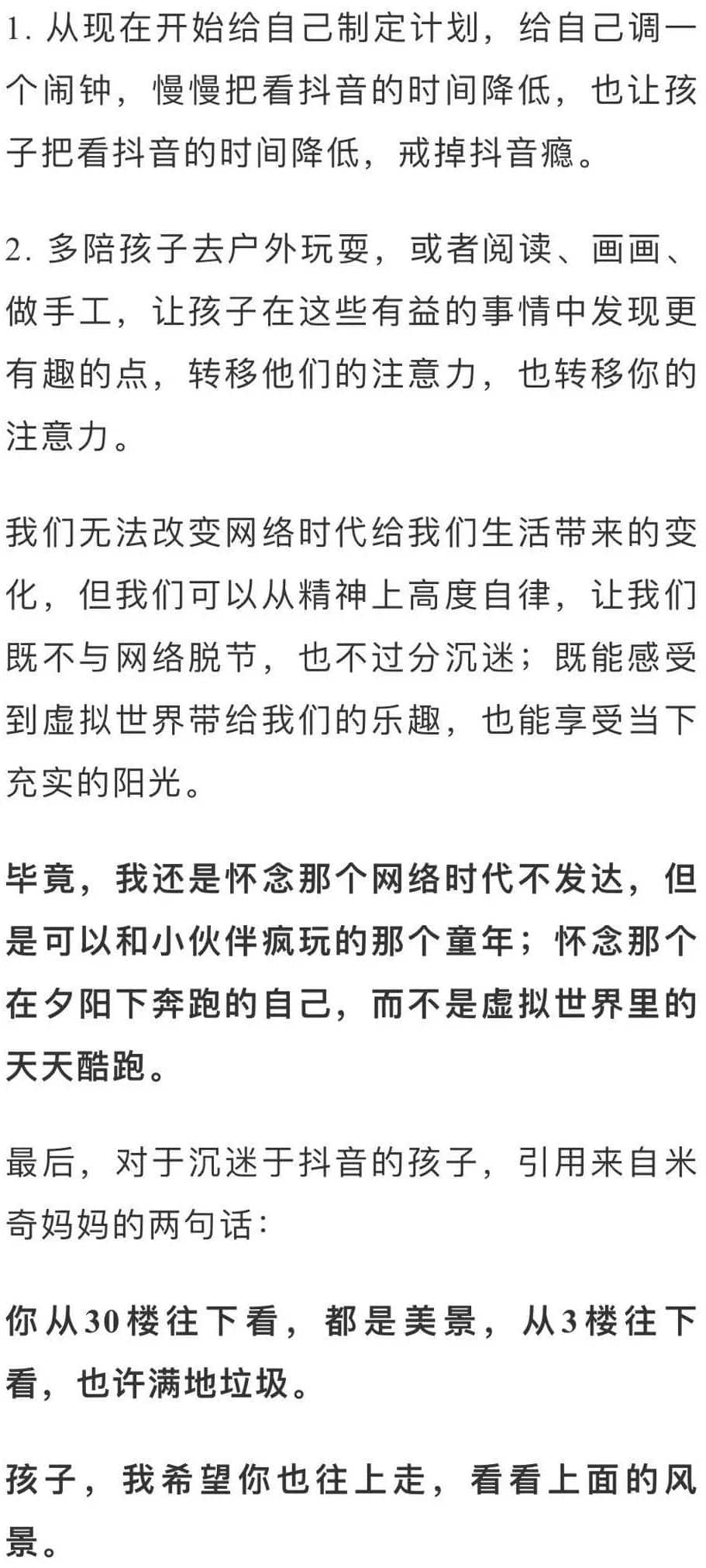 家长是孩子最好的老师,他们的一举一动孩子都是孩子的榜样。远离抖音,不光是孩子,也要从你做起啊!